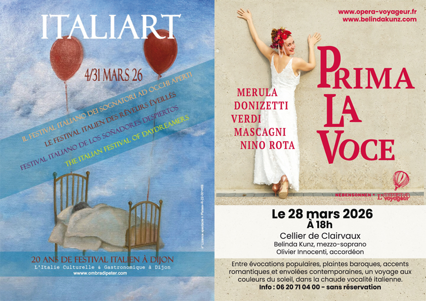 Changement de climat le samedi 28 mars 2026 : ce jour-là, le printemps de l’Opéra Voyageur prendra les couleurs de l’Italie, avec une nouvelle participation au Festival Italiart à Dijon, qui fête cette année ses 20 années d’existence !